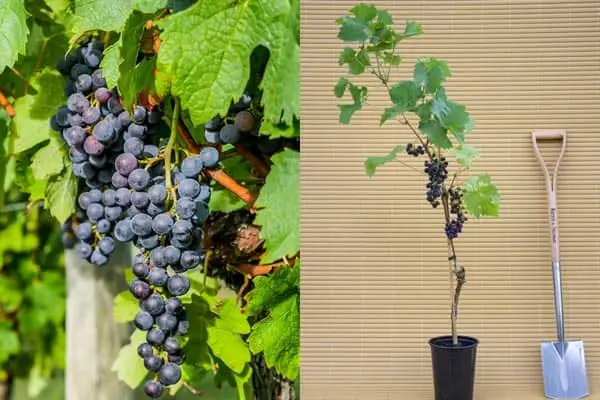 چالههایی که در آنها نهالها کاشته میشوند به صورت ۵۰×۵۰×۵۰ سانتی متر کنده و داخل آنها مقداری کمپوست کهنه و فسفر و آهک میریزند این مواد برای رشد نهالها مفیدند، ولی نباید زیاد روی نمود که نهالها صدمه دیده و ریشه هایشان بسوزد.در باغهای بزرگ معمولاً نهال ها با فاصله ۱۲۰ تا ۱۵۰ سانتی متر از یکدیگر کاشته و بر روی سیم ها میبندند. بهترین زمان برای کاشت نهال های انگور اوایل بهار یعنی پیش از باز شدن جوانه ها است.نهال ها را طوری میکارند که حداقل ۲ جوانه اش داخل خاک مانده، ولی سرشان حدود ۵ سانتی متر خارج از خاک باشد و آنگاه چاله ها را با مخلوطی از خاک و کود پر کرده ، سر نهالها را حدود ۱ سانتی متر میبرند. پس از اتمام خاک ریزی خاک های اطراف نهال ها را با کفش فشار داده به دنبال آن به شدت آبیاری میکنند. کود ها را همه ساله باید به نهال ها داد، ولی نه در کنارش یا در سطح چاله های قبلی بلکه در فاصله ای متناسب با رشد ریشه هایشان و دور از تنه ها.بعد از رفع خطر سرمای اوایل بهار و کمی پیش از باز شدن جوانهها بدون توجه به ارتفاعی که نهال رسیده آنرا از بالای جوانه سوم میبرند بطوریکه برای نهال تنها ۳ جوانه باقی بماند.در بهار یا تابستان پس از آنکه جوانهها رشد کردند به محض اینکه یکی از آنها به ۲۰ سانتی متر رسید دو جوانه دیگر را ازته هرس میکنند و جوانه ۲۰ سانتی متر را به عنوان شاخه اصلی یا تنه بحساب میآورده به یک قیم میبندند. در اواخر پائیز آنرا به ۶ جوانه و شاخههای دیگر را هر کدام به ۲ جوانه محدود میکنند. این هرس همه ساله باید به همین ترتیب (شاخه اصلی ۶ جوانه و شاخههای دیگر ۲ جوانه) تکرار شود تا شاخه اصلی به درازای مورد نظر برسد. هرگاه نهال از بازار خریداری شده باشد ابتدا آنرا ۲۴ ساعت داخل آب (مثلاً وان) میخوابانند بطوریکه آب آنها را خوب بپوشاند. سپس آنها را بیرون آورده یک ساعت در هوای آزاد گذاشته سپس فوراً آنها را در محل اصلی به روش توضیح داده شده بالا کاشته و آب فراوان میدهند.