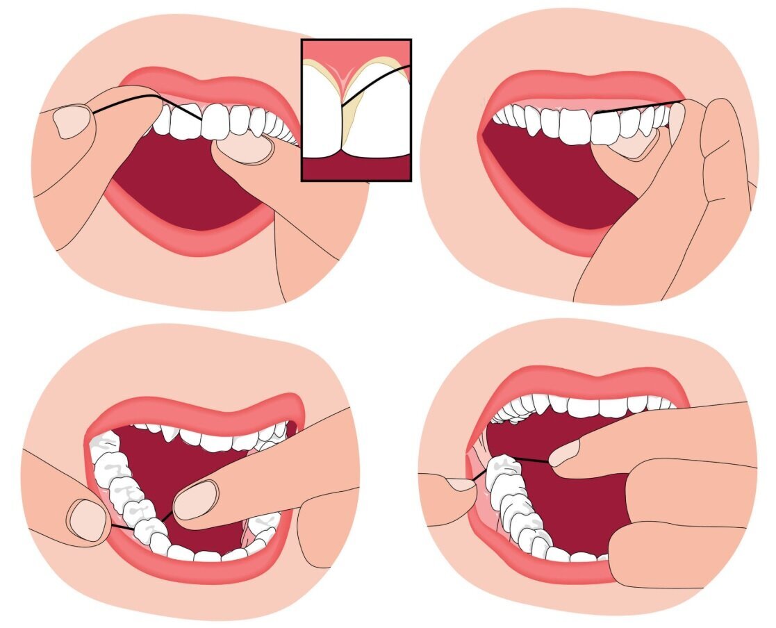 تصویر زیر روش درست کشیدن نخ دندان را نشان میدهد: